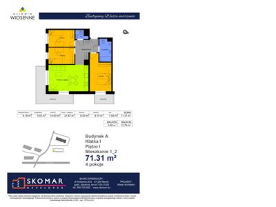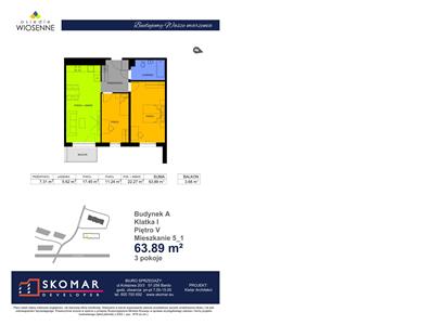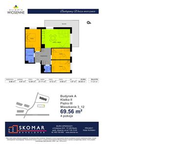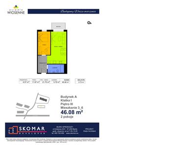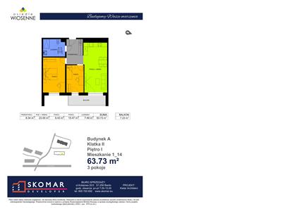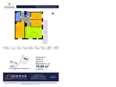 Budynek jednoklatkowy z garażem podziemnym posiada łącznie 62 lokale mieszkalne o powierzchniach od 29,43 m2 do 82,14 m2, 7 lokali usługowych i 35 miejsc postojowych w garażu podziemnym.